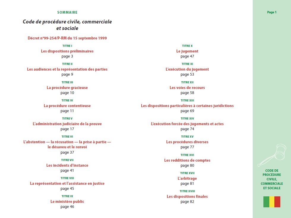 CODE DE PROCÉDURE CIVILE, COMMERCIALE ET SOCIALE Page 1S O M M A I R E Code de procédure... |