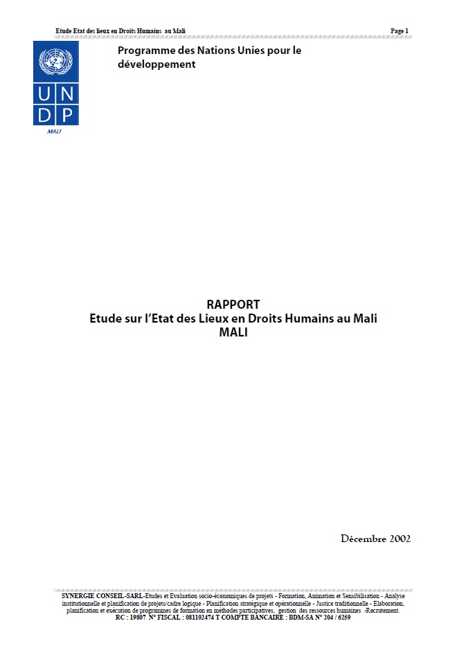 Etude Etat des lieux en Droits Humains au Mali Page 1 SYNERGIE CONSEIL-SARL -Etudes et Evaluation...