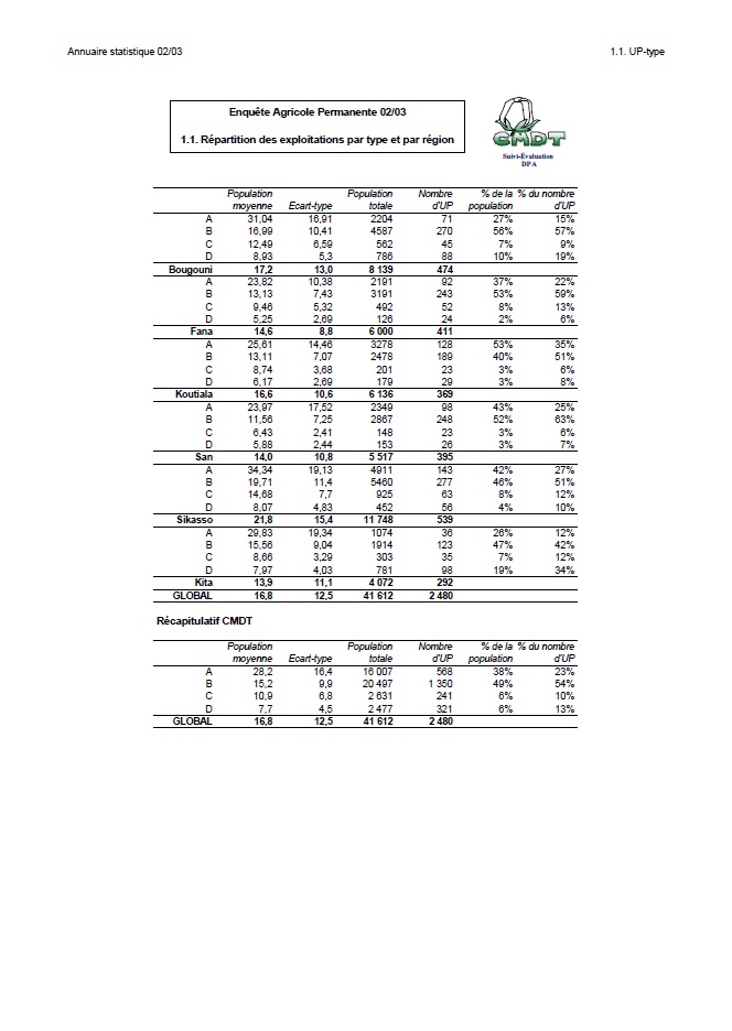 Annuaire statistique 02/03 1.1. UP-type Population moyenne Ecart-type Population totale Nombre d'UP...