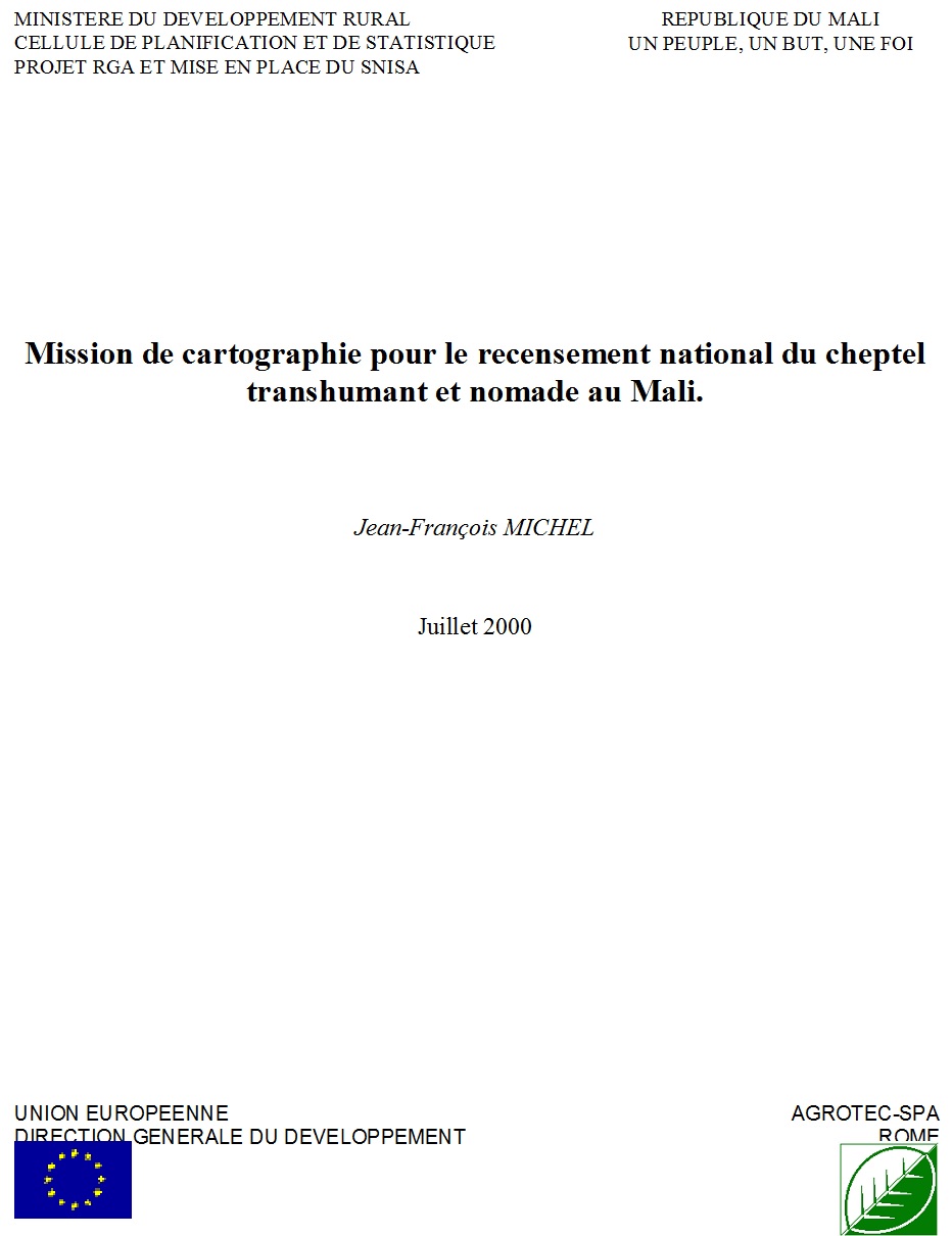 Mission de cartographie pour le recensement national du cheptel transhumant et nomade au Mali.... |