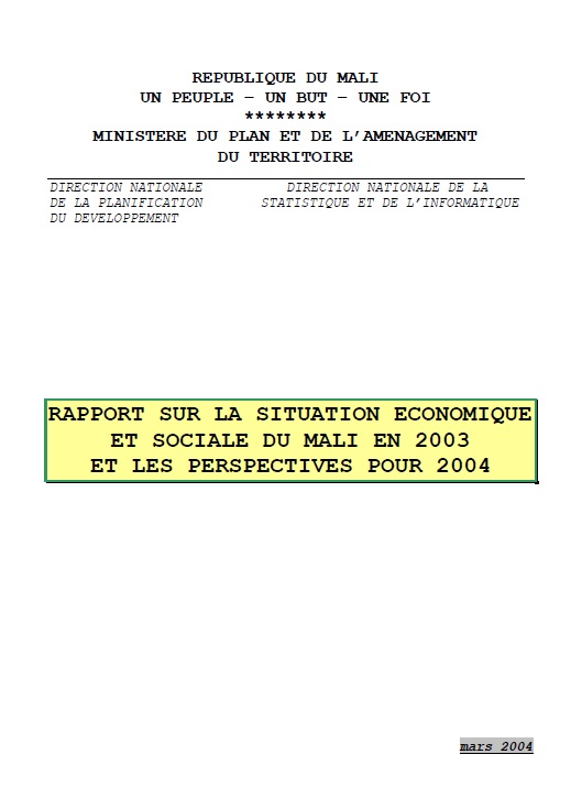 REPUBLIQUE DU MALI UN PEUPLE – UN BUT – UNE FOI ******** MINISTERE DU PLAN ET DE... |