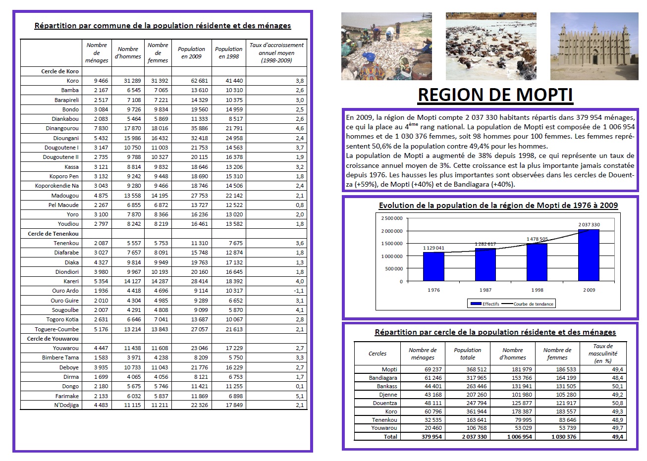 REGION DE MOPTI En 2009, la région de Mopti compte 2 037 330 habitants répartis dans 379...
