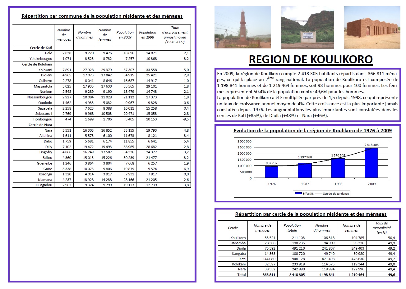 REGION DE KOULIKORO En 2009, la région de Koulikoro compte 2 418 305 habitants répartis...