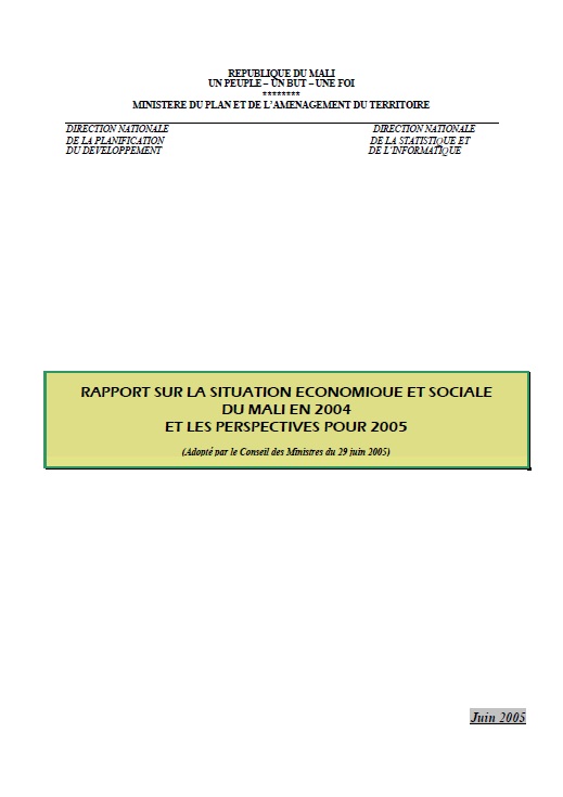 REPUBLIQUE DU MALI UN PEUPLE – UN BUT – UNE FOI ******** MINISTERE DU PLAN ET DE... |
