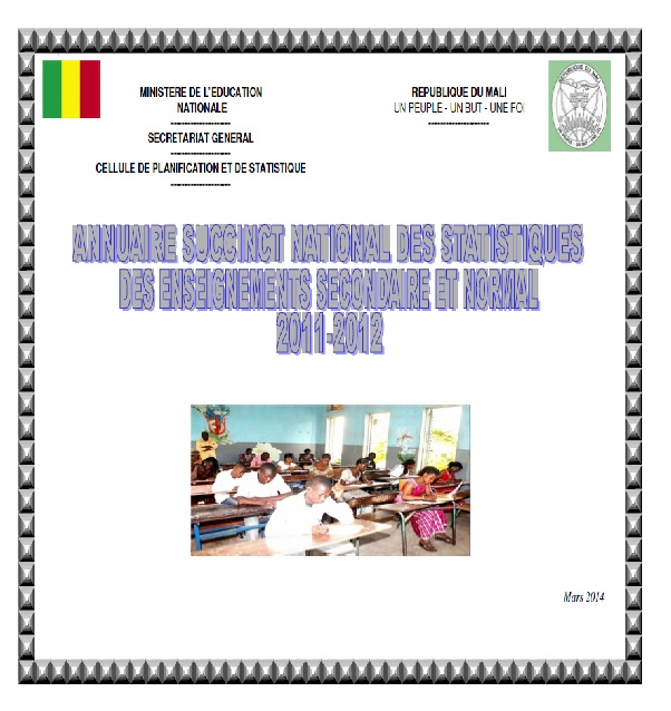 + MINISTERE DE L’EDUCATION NATIONALE --------------------- REPUBLIQUE DU MALI UN PEUPLE - UN... |