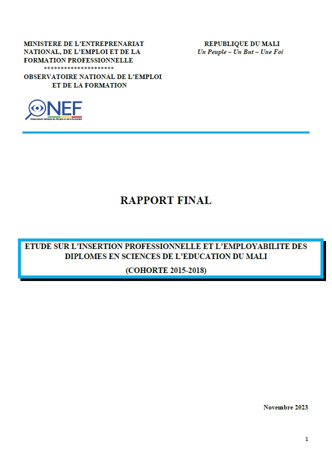 MINISTERE DE L’ENTREPRENARIAT REPUBLIQUE DU MALI NATIONAL, DE L’EMPLOI ET DE LA Un... |