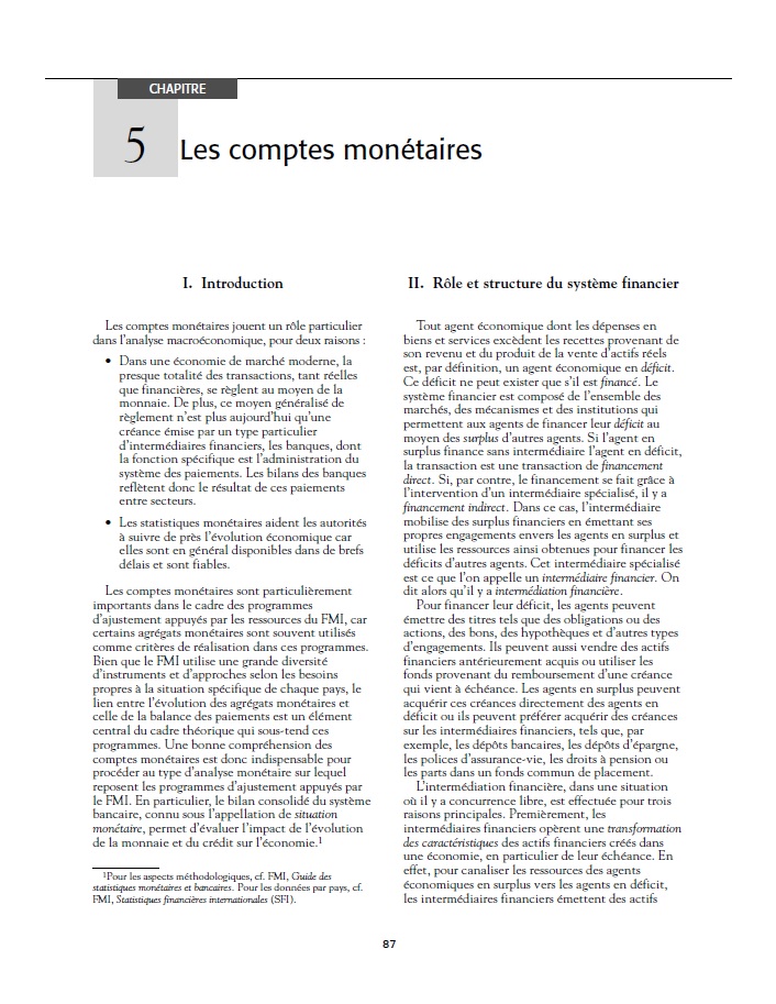 87 I. Introduction Les comptes monétaires jouent un rôle particulier dans l’analyse... |
