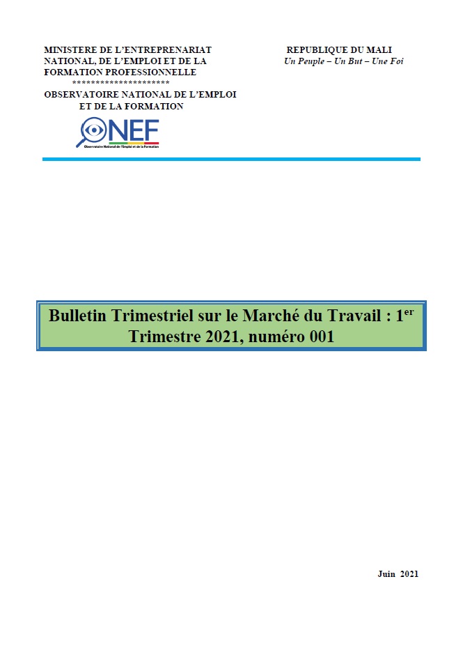 MINISTERE DE L’ENTREPRENARIAT REPUBLIQUE DU MALI NATIONAL, DE L’EMPLOI ET DE LA Un... |