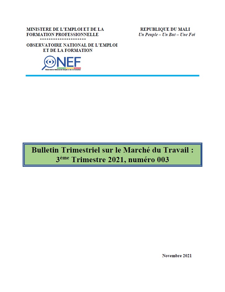 MINISTERE DE L’EMPLOI ET DE LA REPUBLIQUE DU MALI FORMATION PROFESSIONNELLE Un Peuple –... |