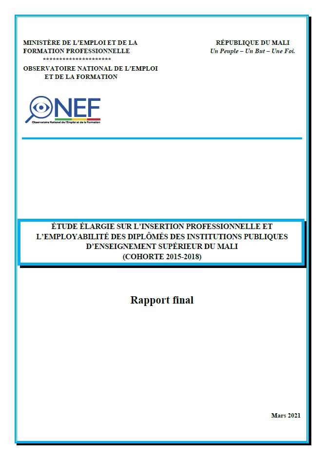 MINISTÈRE DE L’EMPLOI ET DE LA RÉPUBLIQUE DU MALI FORMATION PROFESSIONNELLE Un... |