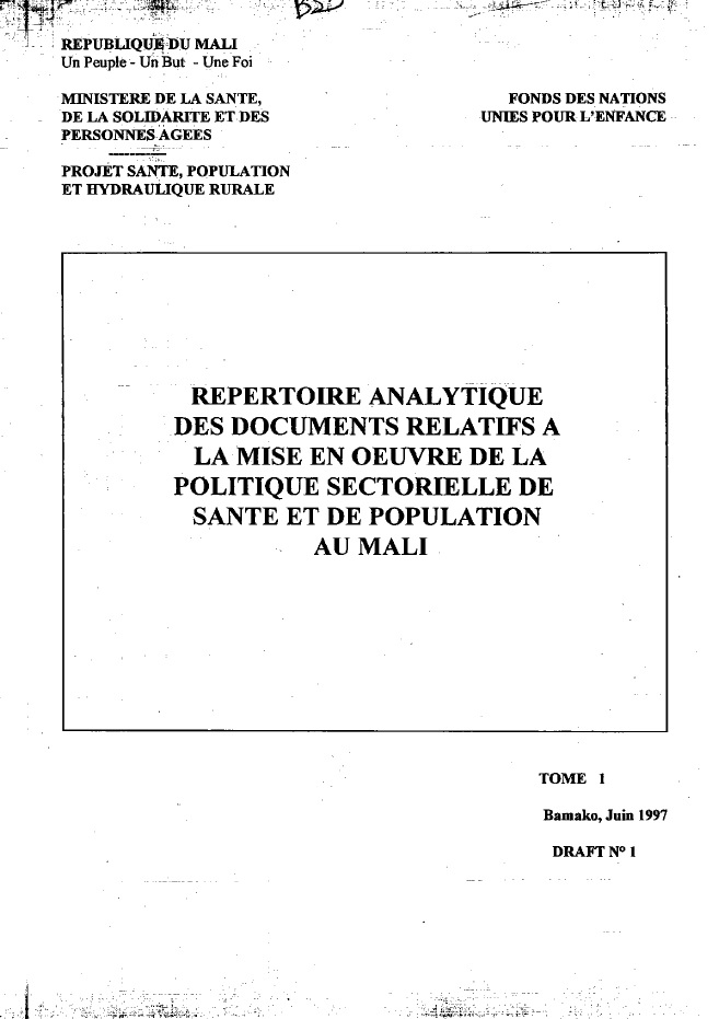 Repertoire analytique des documents de la politique sectorielle de la santé et de population au Mali Auteurs: Date de Pub. :1995-1999 |
