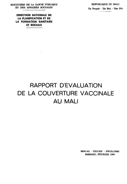 Rapport d'évaluation de la couverture vaccinale au Mali (Fev 1990) Auteurs: Date de Pub. :1990-1994 |