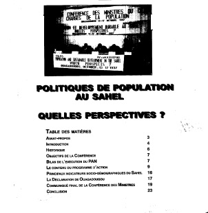Politique de population au sahel Quelles perpectives