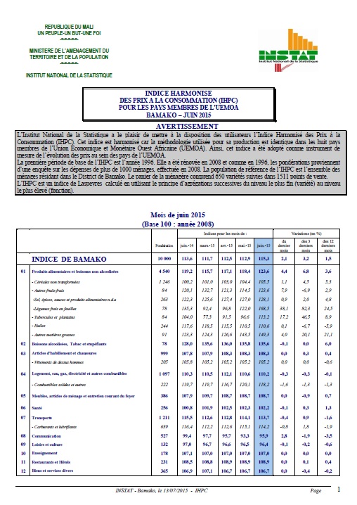 ménages résidant dans le District de Bamako. Le panier de la ménagère comprend 650 variétés suivies dans 1511 points de vente.