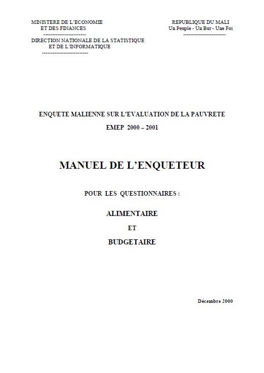 L'Enquête Malienne sur l'Evaluation de la Pauvreté à laquelle vous allez participer est la deuxième du genre réalisée au Mali, eu égard à son caractère national et aux thèmes abordés simultanément à savoir :