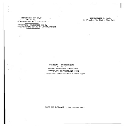 Comptes Economiques du Mali Series Revisées 1985 -1989 Résultats Provisoire 1990