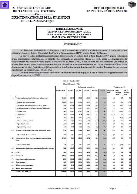 L’indice harmonisé des prix à la consommation (IHPC) du Mali est un indice de type Laspeyres qui couvre la