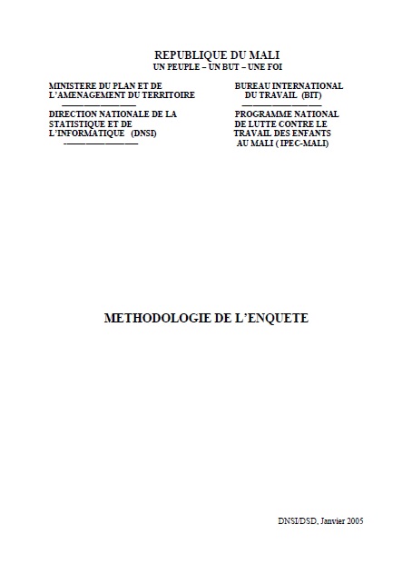C'est dans ce cadre que le Gouvernement du Mali par le biais de la Direction Nationale de la Statistique et de l'Informatique (DNSI) a envisagé de mener en 2004 sur le terrain une enquête sur le travail des enfants. Des conditions favorables à la réalisation du programme sont désormais réunies pour que l'enquête soit exécutée.