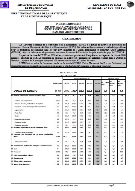 La Direction Nationale de la Statistique et de l’Informatique (DNSI) a le plaisir de mettre à la disposition des