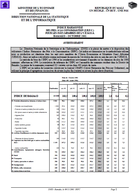 La Direction Nationale de la Statistique et de l’Informatique (DNSI) a le plaisir de mettre à la disposition des