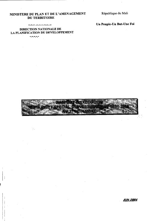 Rapport du budget special d'investissement 2003