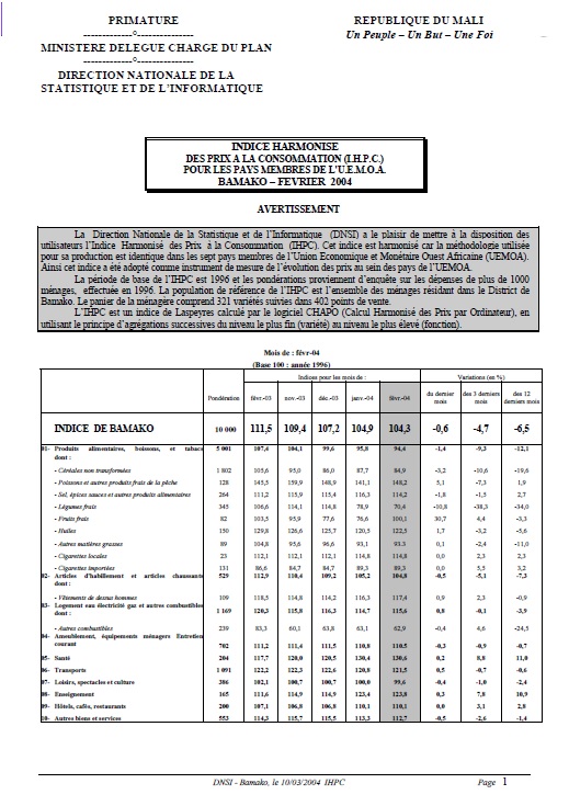 Ainsi cet indice a été adopté comme instrument de mesure de l’évolution des prix au sein des pays de l’UEMOA.