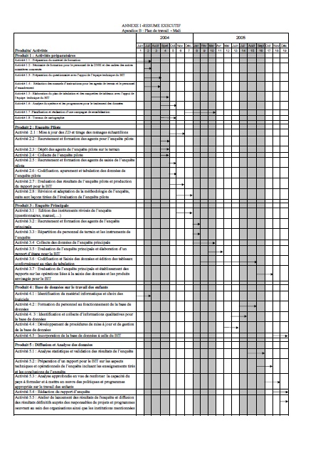| Apendice B : Plan de travail - Mali | |||||||||||||||||||