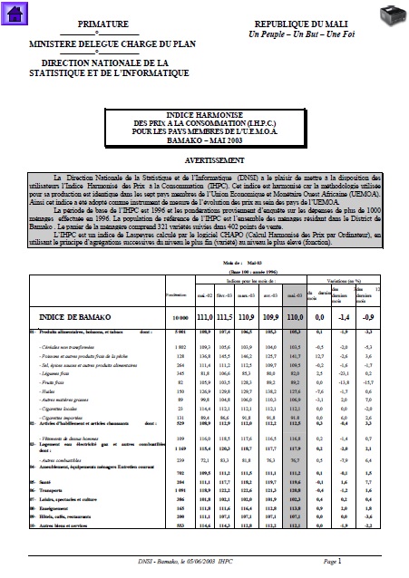 Ainsi cet indice a été adopté comme instrument de mesure de l’évolution des prix au sein des pays de l’UEMOA.