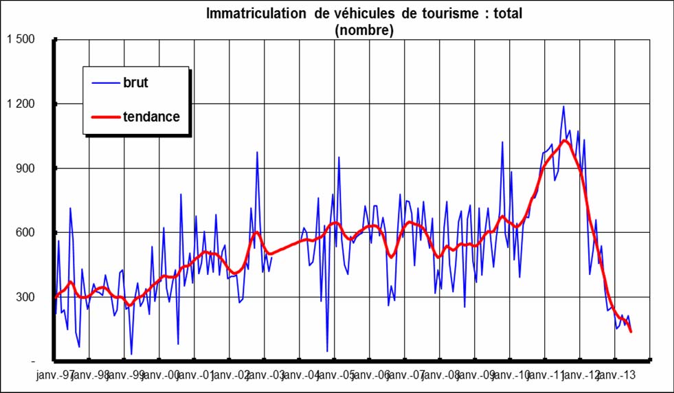 Glissement annuel, c’est à dire taux de croissance par rapport au mois