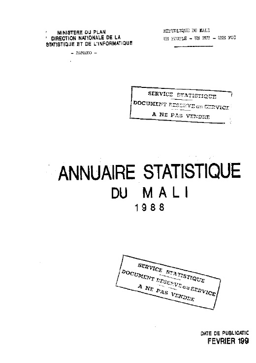 Annuaire statistique du Mali, 1988