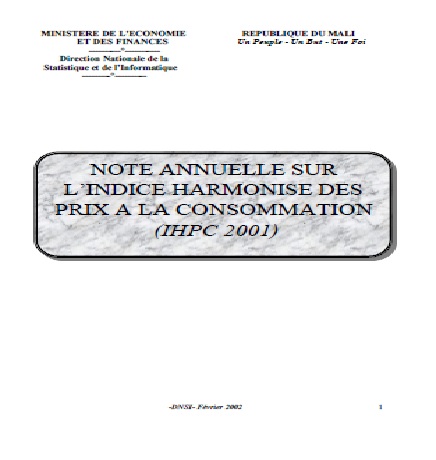 de l’indice harmonisé des prix à la consommation de Janvier 2001 à Décembre 2001