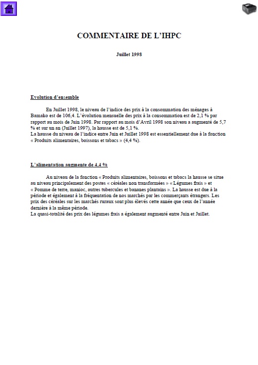 En Juillet 1998, le niveau de l’indice des prix à la consommation des ménages à