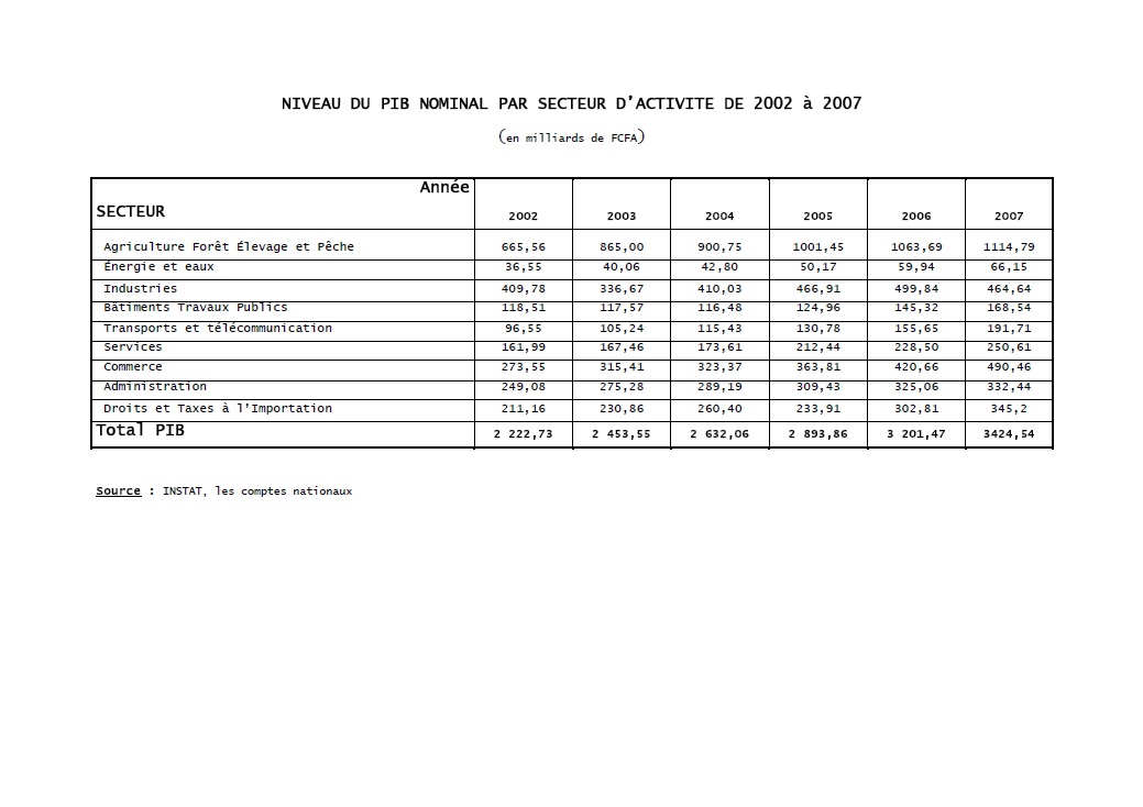 NIVEAU DU PIB NOMINAL PAR SECTEUR D’ACTIVITE DE 2002 à 2007