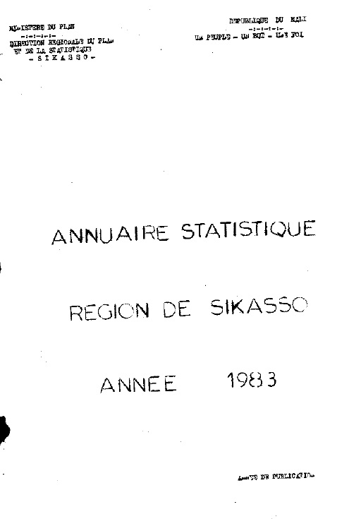 Annuaire statistique Région de Sikasso, 1983
