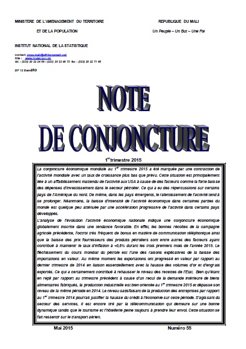 La note de conjoncture analyse l’activit conomique au Mali