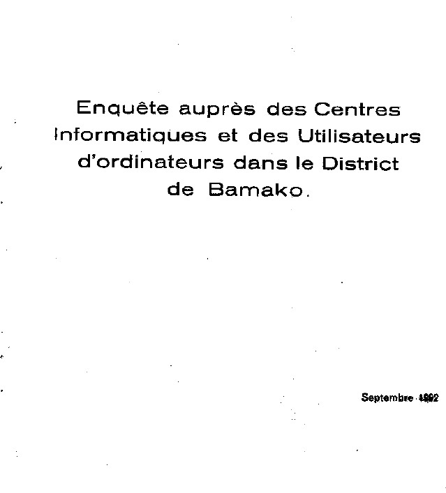 Enquête auprès des Centres Informatiques et des Utilisateurs d'ordinateurs dans le District de Bamako