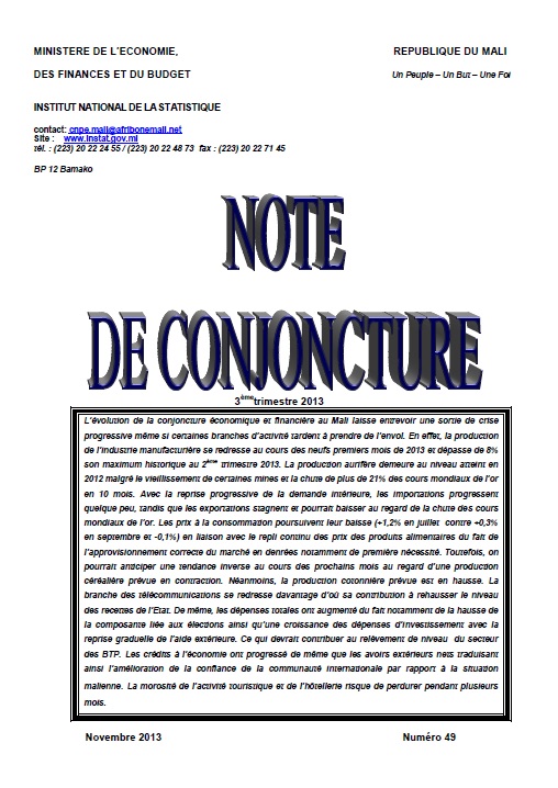 La note de conjoncture analyse l’activit conomique au Mali