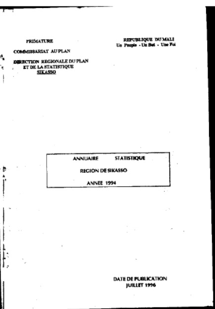 Annuaire statistique Région de Sikasso 1994, 07 1996