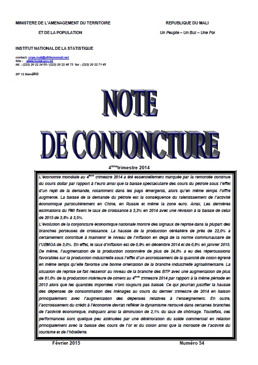 La note de conjoncture analyse l’activit conomique au Mali