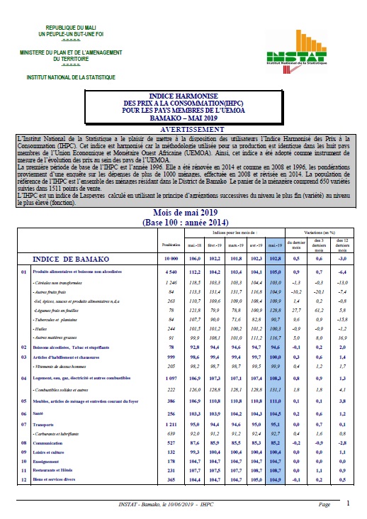 r f rence de l’IHPC est l’ensemble des m nages r sidant dans le District de Bamako Le panier de la ménagère comprend 650 variétés