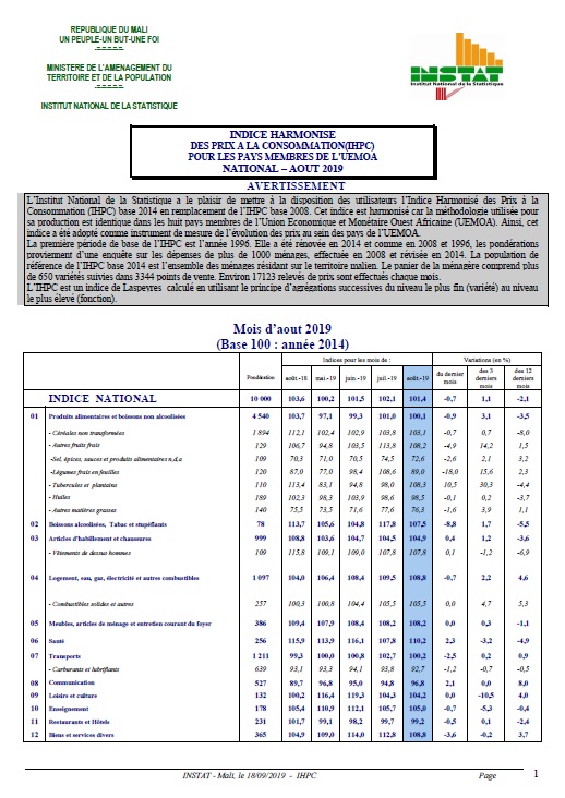 r f rence de l’IHPC base 2014 est l’ensemble des m nages résidant sur le territoire malien. Le panier de la ménagère comprend plus