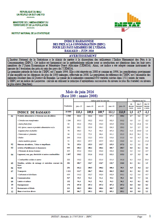 Institut National de la Statistique, Immeuble MEF, ACI 2000 (Avenue du Mali), BP : 12; Tel: 20 22 24 55 / 20 22 48 73, Site web : www.instat.gov.ml