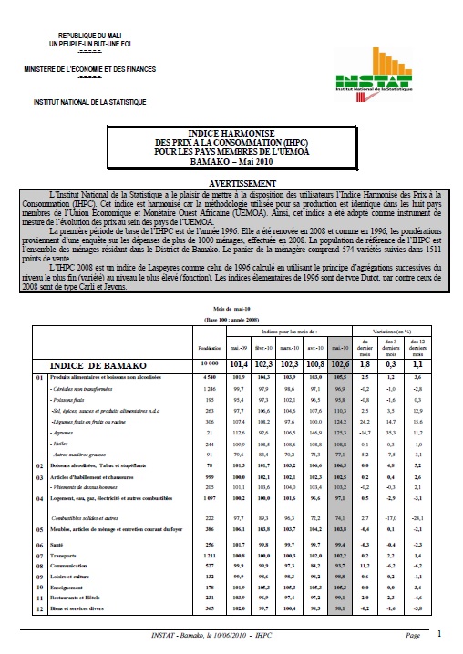 L’Institut National de la Statistique a le plaisir de mettre à la disposition des utilisateurs l’Indice Harmonisé des Prix à la
