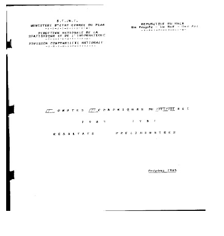 Comptes Economiques du Mali 1981 -1983 Resultats Préliminaires