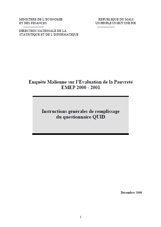 Instructions générales de remplissage du Questionnaire Unifié sur les Indicateurs du Développement (QUID )