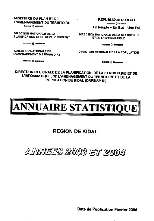 Annuaire statistique Région de Kidal 2003-2004, 02 2006