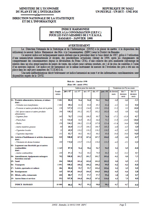 utilisateurs le nouvel Indice Harmonisé des Prix à la Consommation (IHPC) pour le District de Bamako.