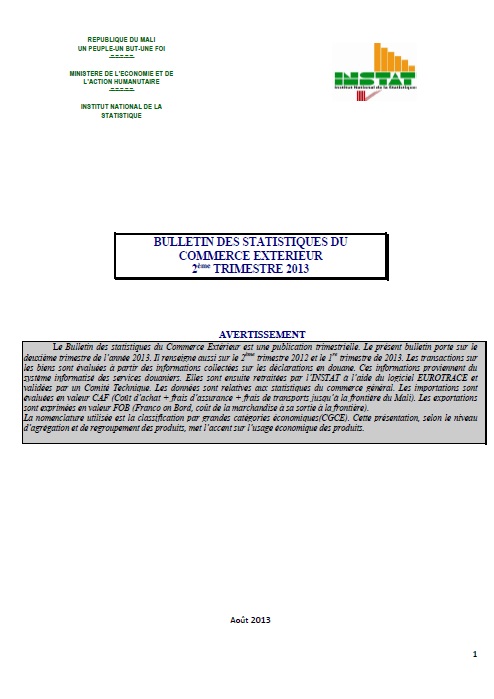 Le Bulletin des statistiques du Commerce Extérieur est une publication trimestrielle. Le présent bulletin porte sur le