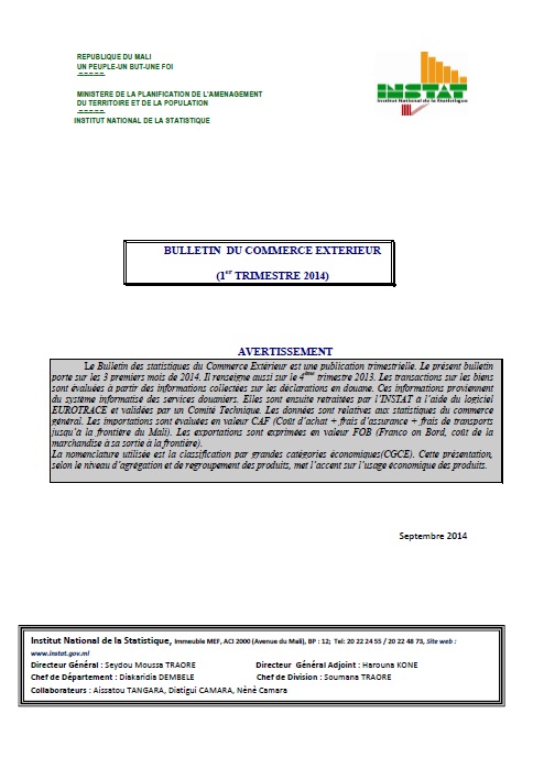 Le Bulletin des statistiques du Commerce Extérieur est une publication trimestrielle. Le présent bulletin