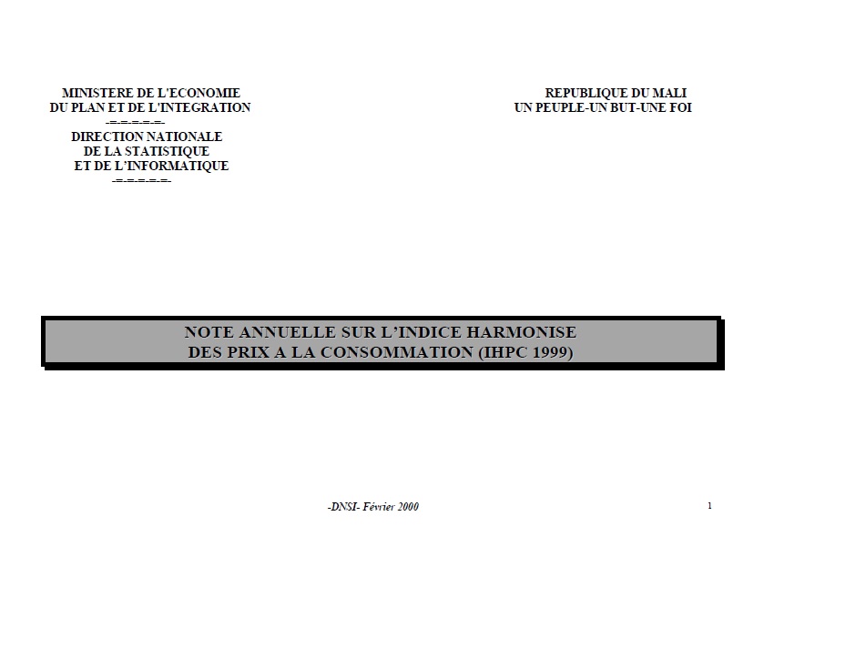 L’indice du Mali a été inférieur à celui de l’Union durant toute l’année 1999. L’indice du Mali a atteint son minimum au mois